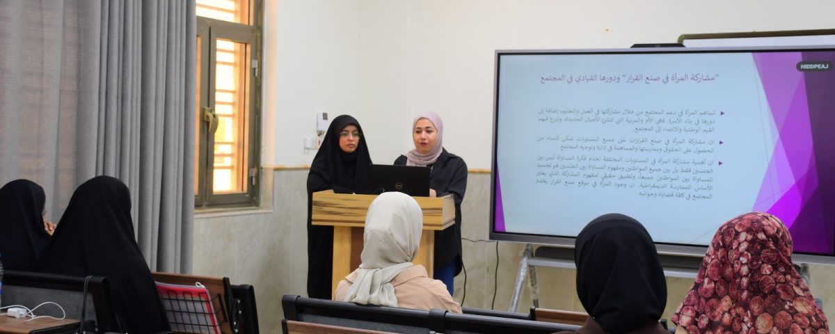 نظم قسم الصحة التحليلات المرضية بالتعاون مع وحدة شؤون المرأه في كلية العلوم الطبية التطبيقية ندوة بعنوان “استراتيجيات تعزيز مشاركة المرأة في صنع القرار وتعزيز دورها القيادي في المجتمع”، قدّمتها م.م سحر إسماعيل ناجي وم.م هدى رياض عبد الحمزة، وبحضور السيد عميد الكلية المحترم أ.م.د زمان صاحب مهدي. تناولت الندوة العلمية أهمية تمكين المرأة في مختلف المجالات، لا سيما في مواقع صنع القرار، ودورها الفاعل في تحقيق التنمية المجتمعية، كما استعرضت أبرز الاستراتيجيات والتجارب الناجحة التي تسهم في دعم المرأة وتعزيز حضورها القيادي في المجتمع.