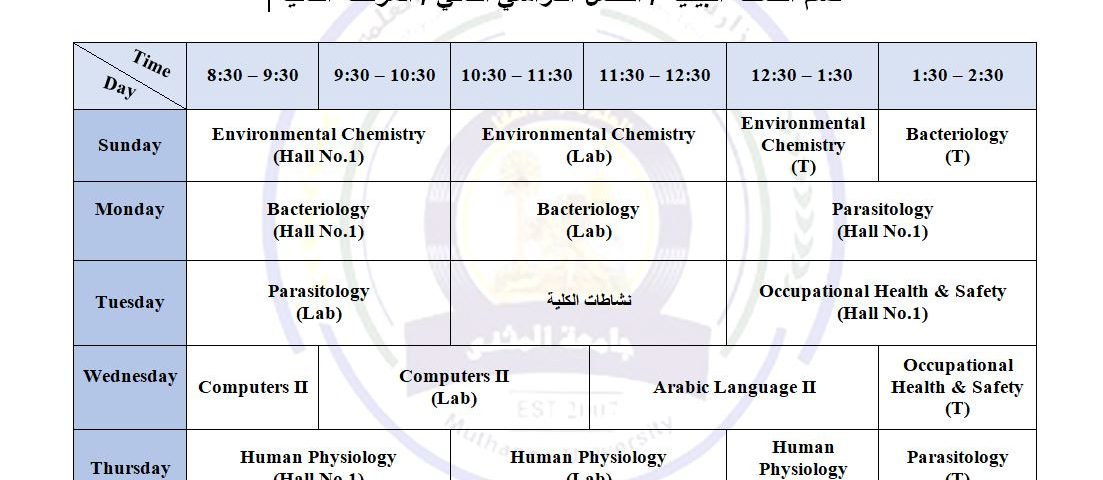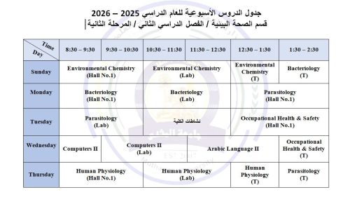 1 فبراير، 2026جدول الدروس الاسبوعي للمرحلة الثانية الفصل الدراسي الثاني
