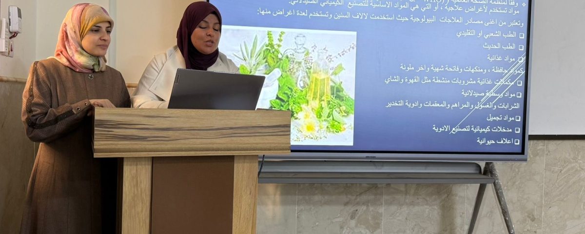 ) يوم الثلاثاء المصادف 9/12/2025 وتهدف الدورة للتعريف بالنباتات الطبية وموادها الفعالة واهميتها والطرق المختلفة لاستخلاصها بطريقة صحيحة و للتعرف على كيفية التحقق من فعالية هذه المستخلصات كمثبطات للنمو المايكروبيةاو مثبطات لنمو الخلايا السرطانية وغيرها من الفعاليات المختلفة.