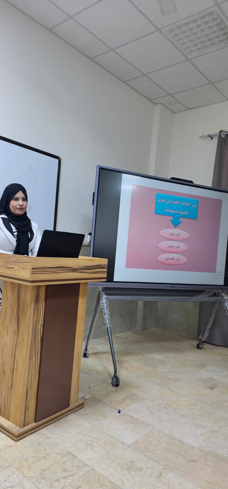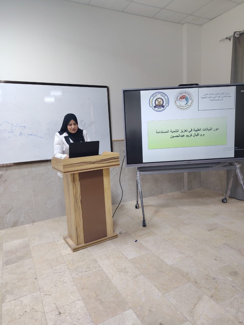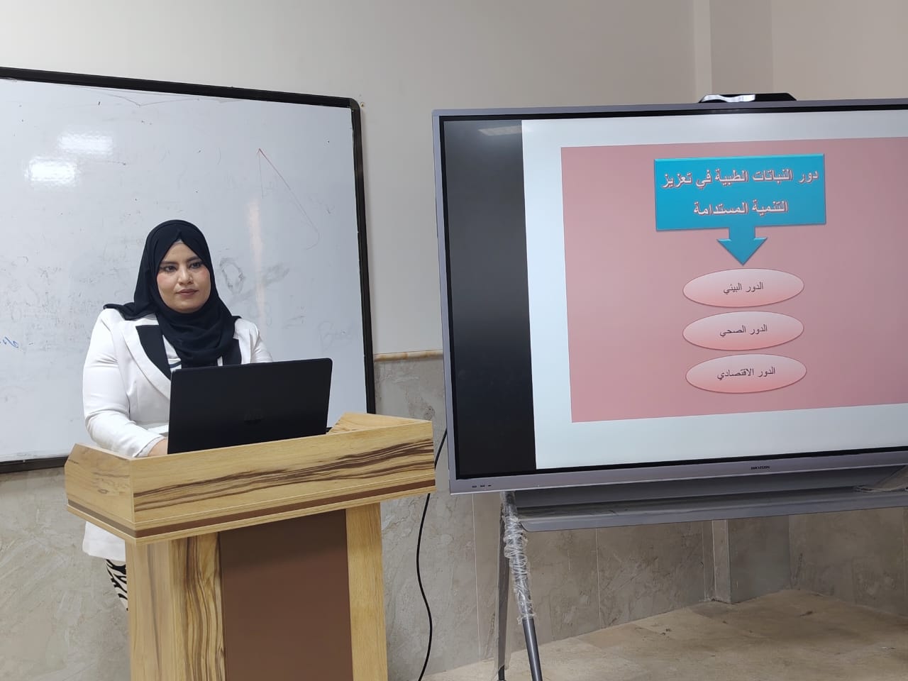 قدّمتها التدريسية م.م إقبال كريم عبدالحسين، حيث تناولت الحلقة دور النباتات الطبية في دعم الاستدامة البيئية والاقتصادية، وأهميتها في تحسين الصحة العامة، مع بيان إمكانية توظيفها في تحقيق أهداف التنمية المستدامة.